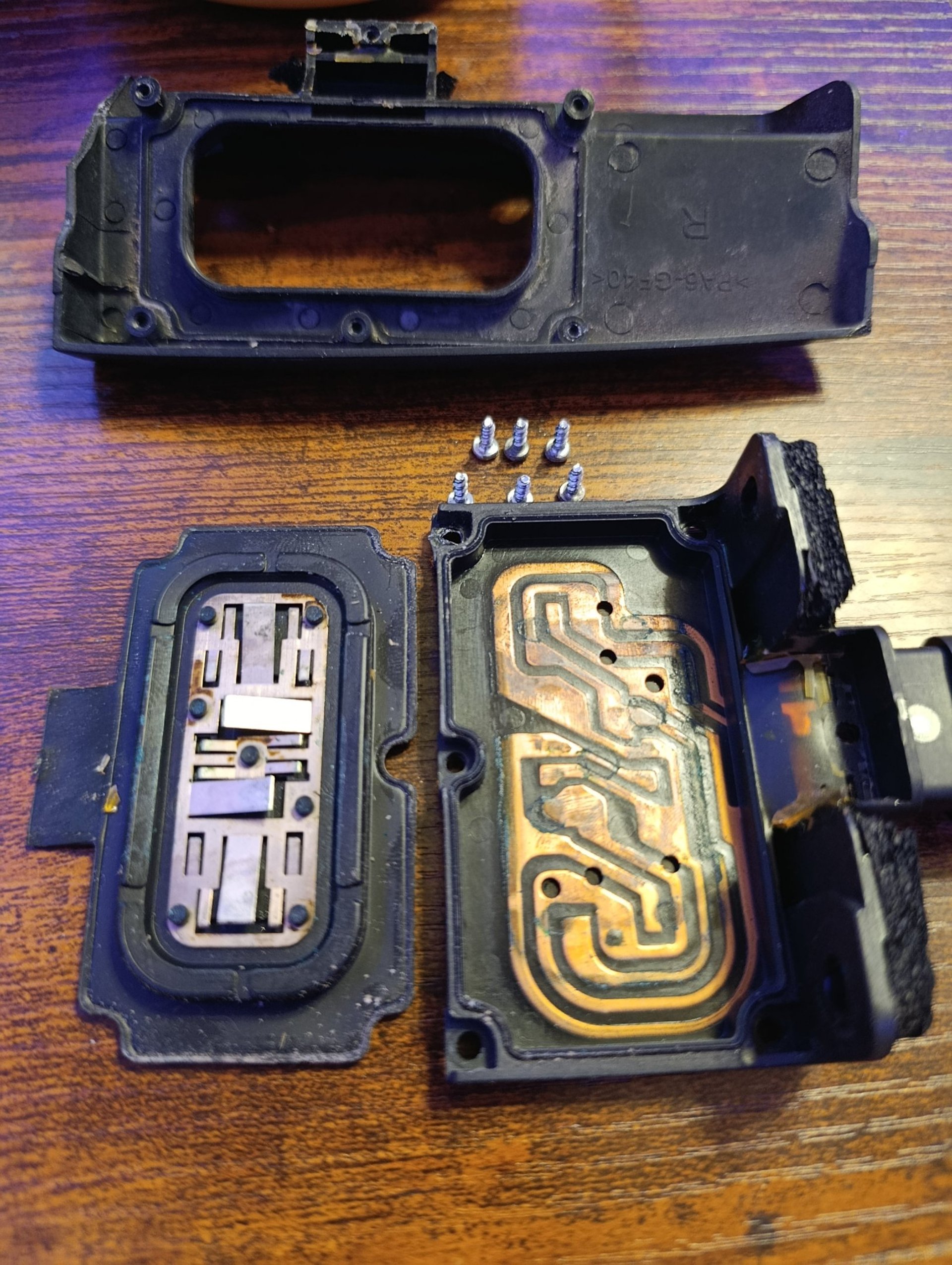 The Swap: Back the screws out, unplug the old pad, and clip the new one in.
